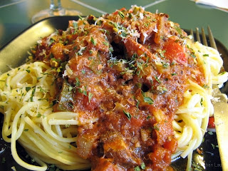 Spaghetti is totally my comfort food. Back in my younger days, I used to make spaghetti by browning up some ground beef, pouring in a bottle of Ragu spaghetti sauce, and seasoning it with some Italian seasoning. That was then but now we hardly use bottle sauce as we like to control how much sugar and salt goes in our foods.