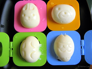 Apparently, they didn’t limit cute design to just erasers and gadgets. They’ve found their way into food as well. Annie got these cute little egg molds sent to her from Japan via Singapore.